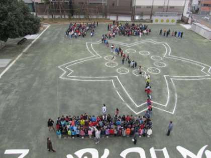 航空写真撮影が終わったら、今度は集合写真の隊形に並び替えます。