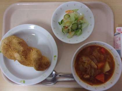 牛乳 きなこ揚げパン ボルシチ フレンチサラダ
