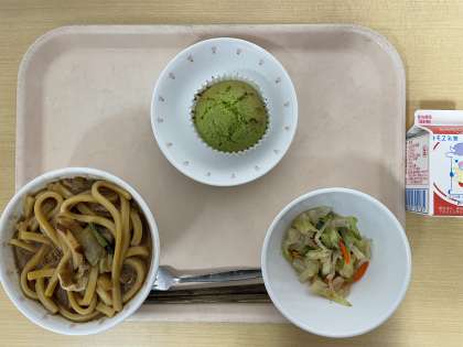 牛乳 味噌煮込みうどん 梅ドレサラダ 東京ケーキ