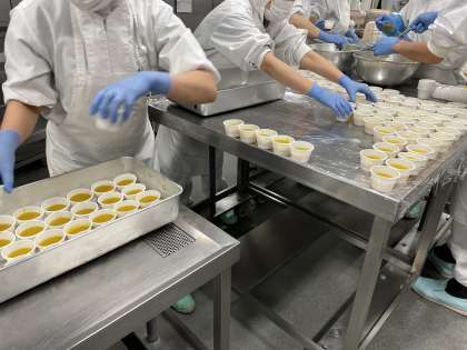 ☆12月22日は「冬至」です。「冬至」とは、1年の中で一番夜が長い日のことをいい、その日に「ん」のつく食べ物や「ゆず湯」に入り無病息災を願います。そこで、今日は「ゆず大根」と「かぼちゃようかん」を給食に出しました。「かぼちゃようかん」は固まるのが早く、時間との戦いでしたが、調理員さんみんなの力を合わせて綺麗に作ることができました☆