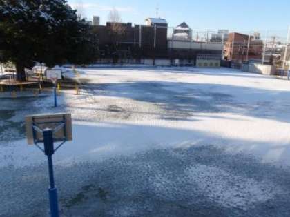 今朝は、校庭が真っ白でした。中休みには、日向の部分は雪が解け出し、まぶしく光っていました。