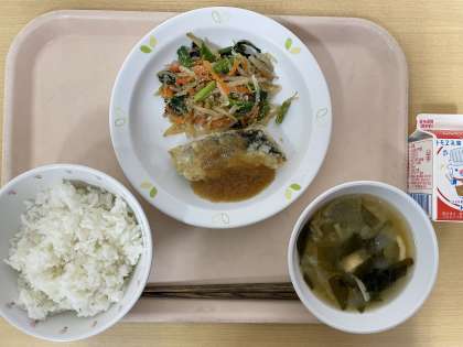 牛乳 ごはん たらのみぞれかけ 野菜のごまだれかけ 油揚げの味噌汁