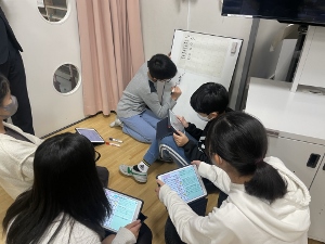 11月25日(金)に、講師の先生をお招きして6年4組の研究授業を行いました。「みんなで楽しく過ごすために」という教材で、1年生と交流するためにどんな遊びがよいか話し合い、自分たちで遊びを開発しました。