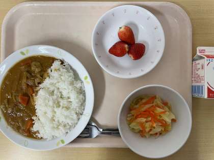 牛乳 バターチキンカレー カントリーサラダ いちご