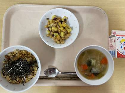 ☆今日は初めて「ひつまぶし」を出しました。調理員さんがうなぎを一回オーブンでカリッと焼いてからごはんに混ぜてくれました。そのおかげで、うなぎが苦手という子も「食べられた!すっごく美味しかった!」と嬉しそうに教えてくれました。