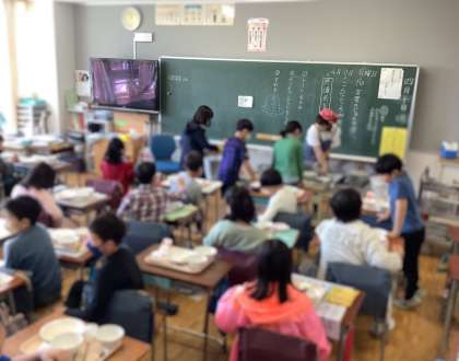 給食が始まり、どのクラスも久しぶりに桜のおいしい給食を楽しんでいました。