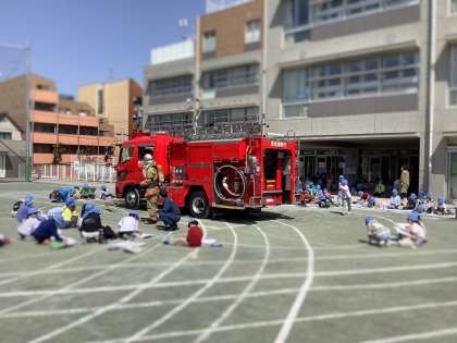 大きなポンプ車や消防隊を見て、2年生は大喜び(^^)/