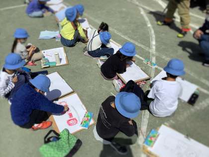 クレヨンを使って、一生懸命に消防車を描いていました。