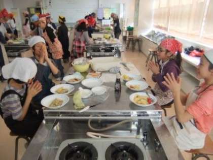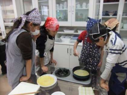 薄く丸い生地を作るのはむずかしいのですが、慎重に焼き上げました。みんななかなか上手で、自分が焼いた生地を友達と見せ合って仕上がりに満足していました。