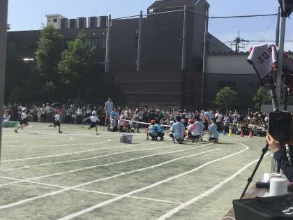 徒競走では、ゴールめがけて全力で走り切ることができました。