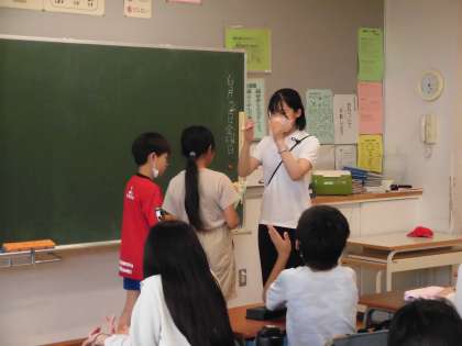 5月15日から3週間、4年3組で教育実習をしていた、大崎先生が今日で最後の実習となりました。5時間目には4年3組の子供たちとお別れ会をしました。元気いっぱいの4年3組と一緒に過ごせて楽しかったと言っていました。