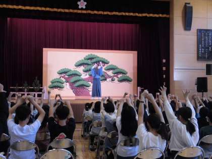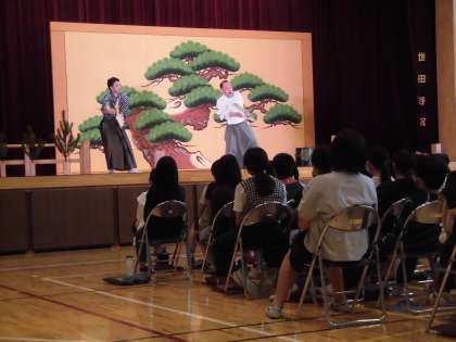今日は、桜小学校の体育館で6年生の古典芸能鑑賞教室が行われました。