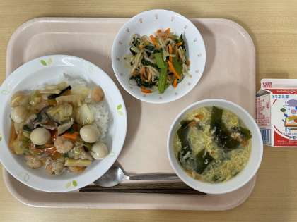 牛乳 中華丼 野菜のコチュジャンあえ トックスープ