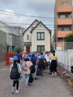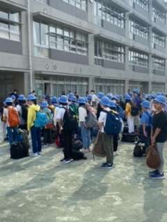 校庭で出発式を行い、元気に出発しました。保護者の皆様、朝早くからご準備やお見送りありがとうございました。