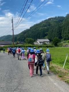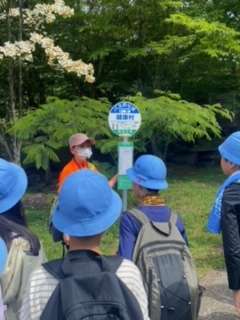 1日に5便しかバス来ないこと、川場名産のブルーベリーの説明を聞きました。たくさんの自然を感じながら歩いています。