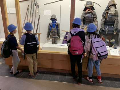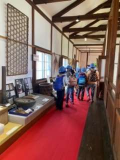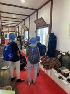 川場村歴史民俗資料館を見学しています。行動班での最後の活動となります。じっくり見ています。