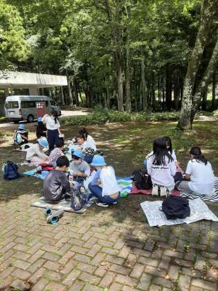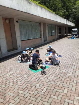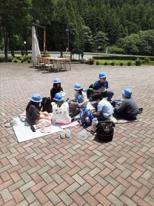 開室式を行って宿の方に挨拶をし、きれいな空気の中で昼食タイムです。