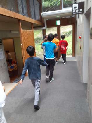 生活班ごとに入室をし、避難訓練をしました。子供たちは、時間を見ながら声を掛け合い行動しようとしています。はし作りが始まりました。