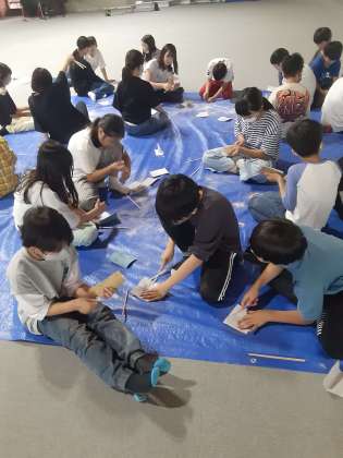子供たちは、2種類のやすりを駆使して取り組んでいます。だんだん箸の形になってきて、嬉しそうです。