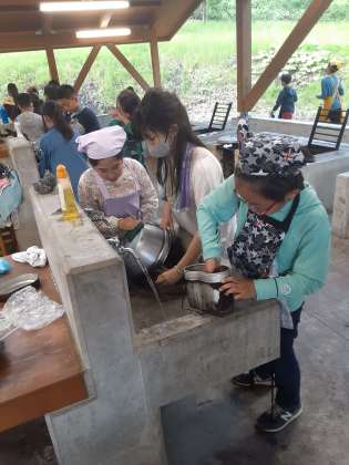 カレーを食べ終わり、片付けをしています。食器も飯盒もかまども、元のようにきれいに、と張り切って取り組んでいます。作って食べる、で終わらずに最後までやり切ろうとする姿、すばらしい!