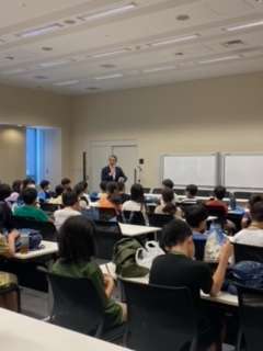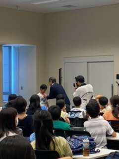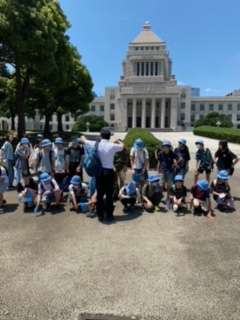 国会議事堂見学では、外国人のお客様をご案内していた河野太郎大臣にお会いできた子供たちもいました。見学後は、国会議事堂前で、集合写真を撮り、議員会館へ移動しました。議員会館では、衆議院議員の越智隆雄様からお話を伺いました。