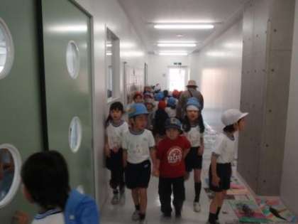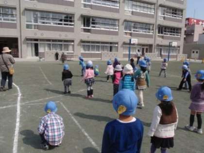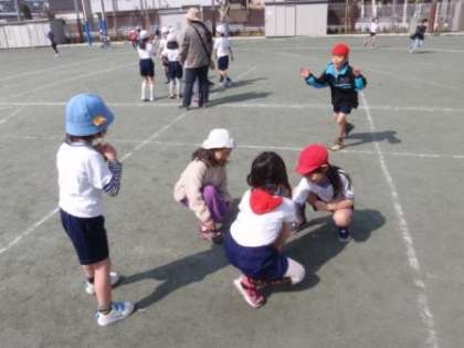 今日は、桜保育園の園児を迎え、校庭遊びと校舎案内をしました。