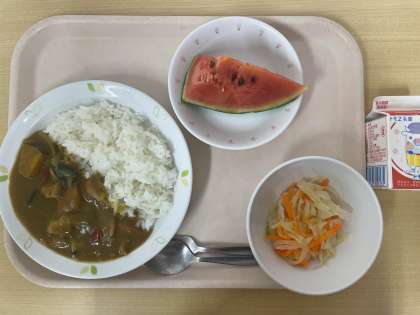 牛乳 夏野菜カレー カントリーサラダ すいか
