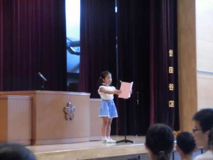 もう一つは、挨拶です。毎朝、代表委員が元気に挨拶をしてくれましたね。その挨拶にみんなもよく挨拶を返していて、私はその様子を見て、朝から元気をもらっていました。「挨拶」は人と人とをつなぐ大切な言葉です。元気よく笑顔で、2学期も続けてやっていきましょう。