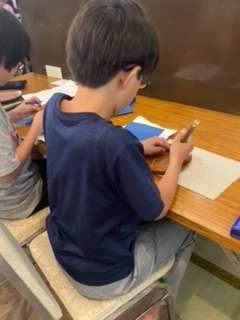 自分で考えたデザインを、カーボンを使って写し、その線を丁寧に彫りました。