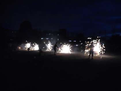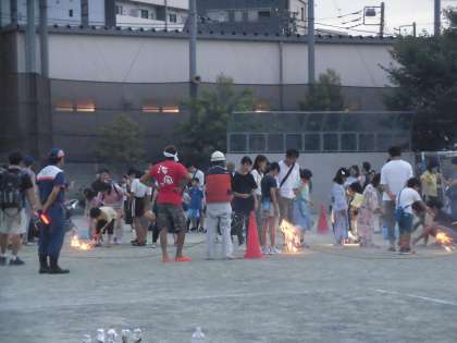 夕方から、花火大会が開催されました。前半は、先着250人、手持ち花火。後半は、打ち上げ花火をしました。たくさんの子供たちが花火を楽しみました。