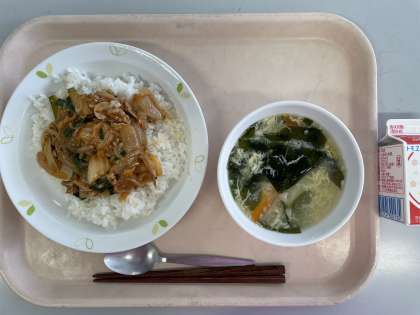 牛乳 豚キムチ丼 トックスープ