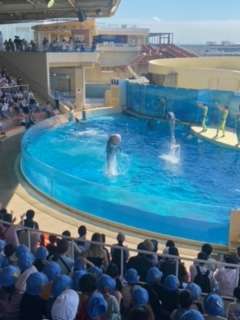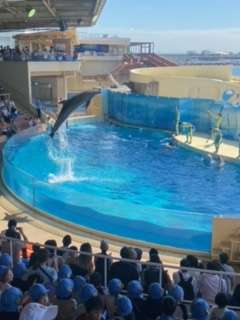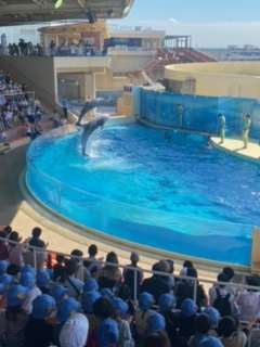 イルカショーを見ました。迫力あるイルカに圧倒されていました。