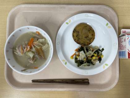牛乳 長崎ちゃんぽん わかめサラダ つきあげ