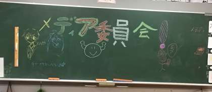 私達メディア委員会は黒板にイラストを描いたりして写真を撮りました!
