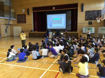 1、2、3年生は「いかのおすし」の映像を視聴しながら不審者に遭遇したときの対応、4、5、6年生はSNS犯罪を学びました。