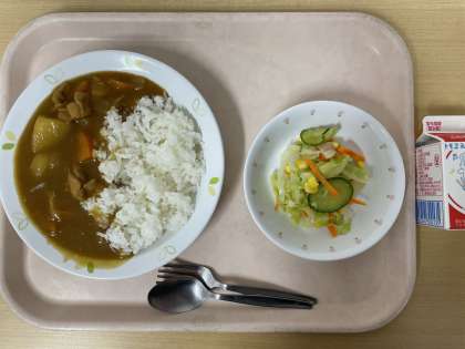牛乳 チキンカレーライス コーンサラダ