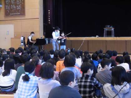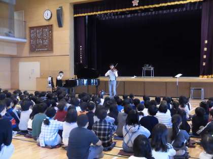 子供たちは、バイオリンやピアノの演奏に合わせて、手拍子をして楽しく聴きました。
