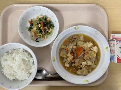 牛乳 ごはん 家常豆腐 豆もやしナムル