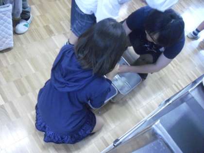 「係じゃないけど、私やります!」と言って、さっと牛乳のキャップフィルムをむき始めてくれました。