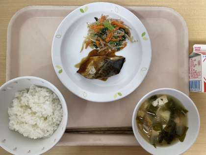 牛乳 ごはん 魚の照り焼き 野菜のごまだれかけ じゃが芋の味噌汁