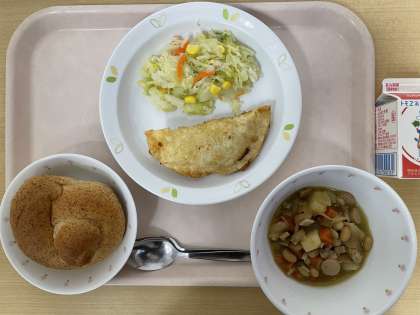 牛乳 胚芽パン フェジョアーダ パステウ コールスローサラダ