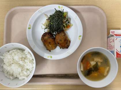 牛乳 ごはん 豆腐入りさくさくつくね 野菜ののり和え 厚揚げとかぼちゃの味噌汁