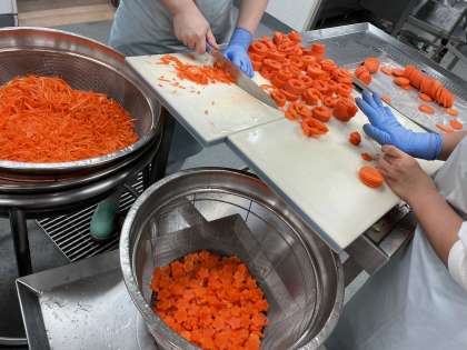 3月3日が日曜日なので、給食では今日、ひな祭りの献立にしました。ひな祭りとは、その季節の花から「桃の節句」ともいわれ、ひな人形や桃などをお供えして女の子の健やかな成長と幸せを願う行事です。給食でもそんな願いを込めて、「ちらし寿司」と「ももゼリー」を出すことにしました。ちらし寿司は、いんげんとお花型のにんじんで飾り付けもしました。