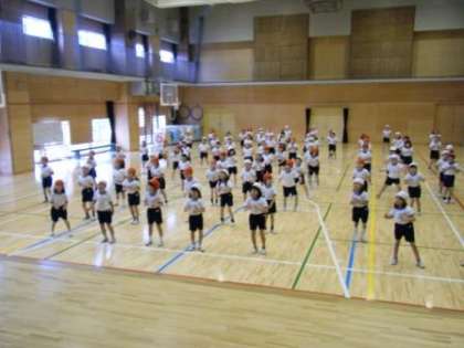 嵐の「ワイルドアットハート」に合わせてボールを使って踊ります。
