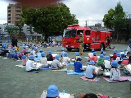 消防士さんが,消防服に50秒で着替えるところを見ることもできました。