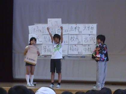 9つのマスに先生の名前を書いて、集会委員会が発表する先生の名前と合えばビンゴです。