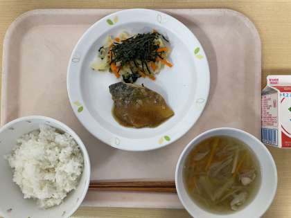 今日の魚は「さば」です。日本では昔からよく食べられていました。「さば」には、頭の働きを良くして、血をサラサラにする栄養が多く含まれています。しっかり食べましょう。