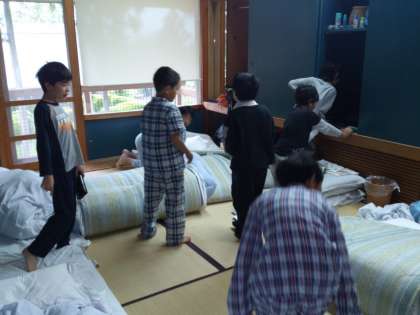 起床時刻前に目覚めてしまった子も寝ている友達を気遣い、起床時刻まで静かに待っていました。とても立派なことです。