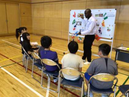 ネイティブティーチャーと英語でコミュニケーションをとりながら、各国の文化や生活について楽しく学習しました。また、グループになって英語のクイズにも挑戦しました。