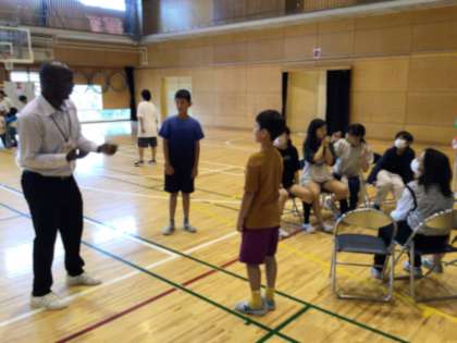 28日(火)には、5年2組と3組、6年生全クラスがイングリッシュキャラバンに参加しました。